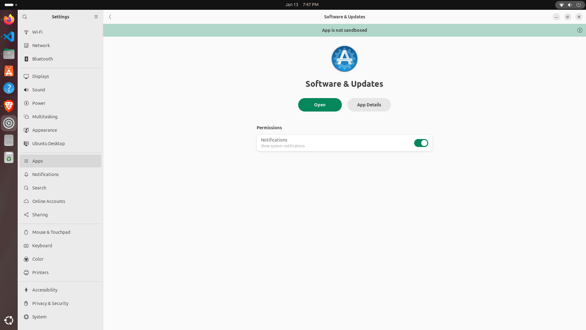 1. Buka Setting lalu pilih aplikasi Software & Updates